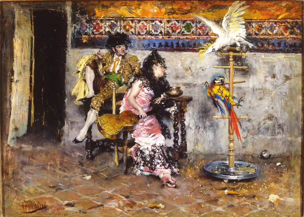 - Vittorio Matteo Corcos: Con opere come Signora con il cagnolino o L’Inglesina, si nota un contrasto tra il realismo quasi fotografico e statico di Corcos e il dinamismo “elettrico” di Boldini.