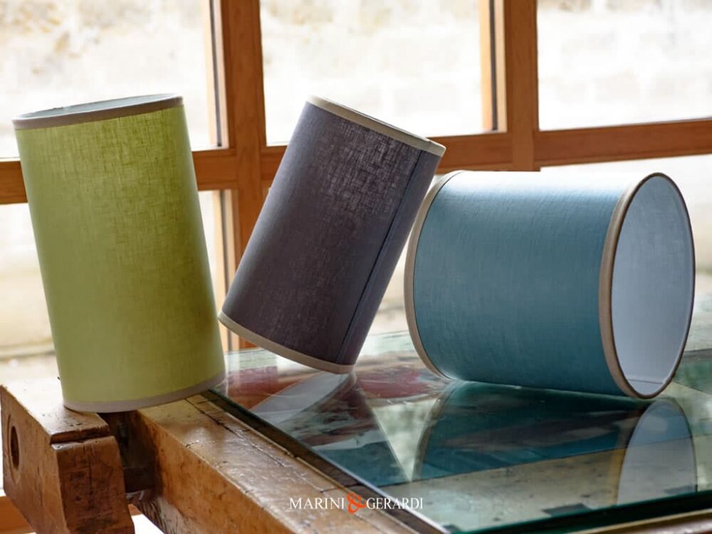 Il paralume della lampada è foderato in puro lino antimacchia impermeabile e filtra la luce creando una dolce atmosfera.