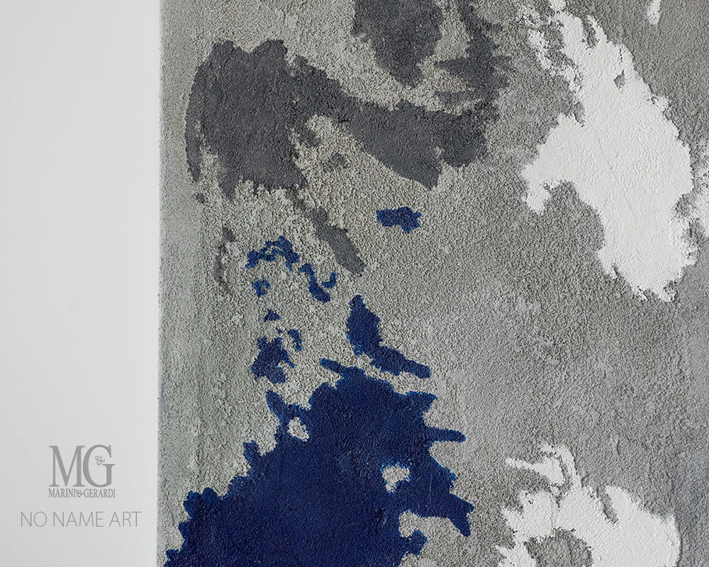 Quest’opera non rappresenta la realtà, ma un’emozione. Realizzato con tecnica mista e un uso sapiente della spatola, il dipinto presenta una texture materica che invita quasi a essere toccata. I contrasti tra le tonalità del grigio, bianco e il blunotte creano un dinamismo visivo capace di catturare lo sguardo immediatamente.