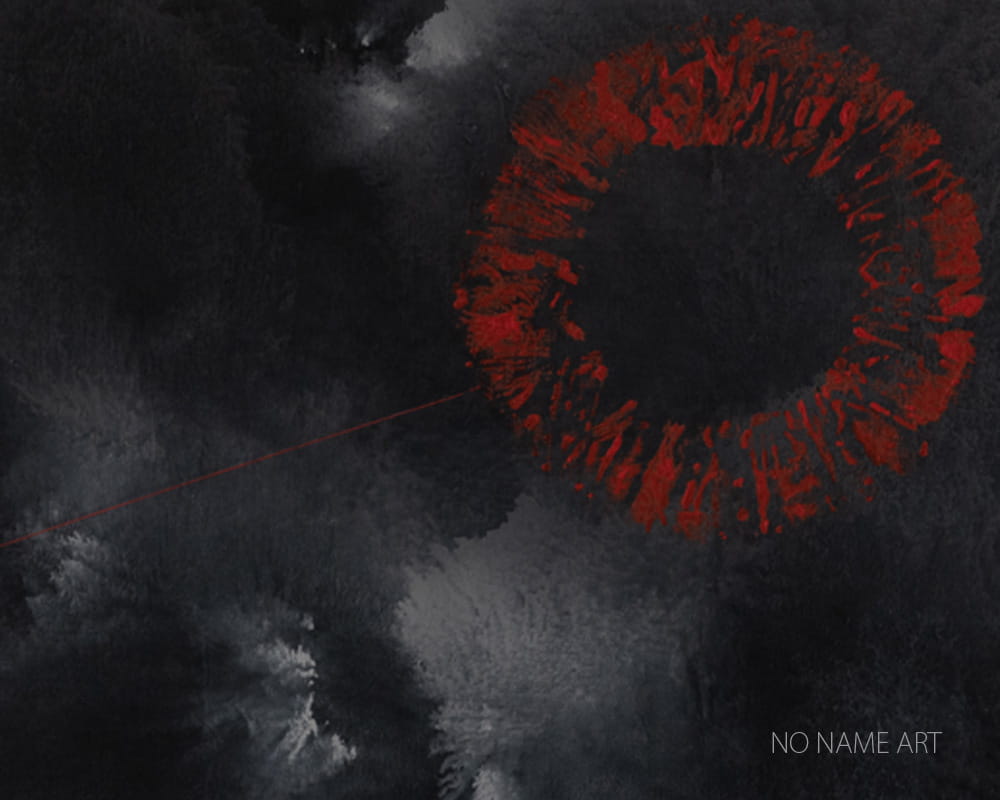 IL METAFISICO non è solo arte astratta, è un’esperienza emotiva. L’artista ha sapientemente sfruttato le profondità del nero e del grigio per creare uno sfondo che evoca l’inquietudine sublime di un cielo temporalesco, o forse, la vastità inesplorata dell’inconscio.