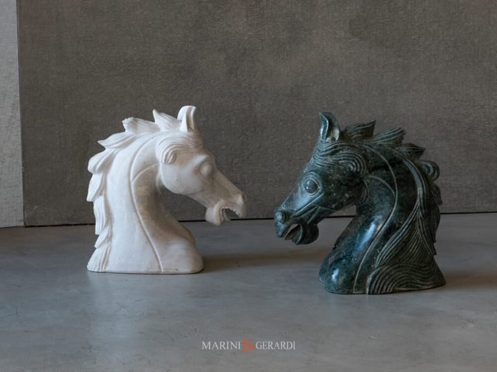 Sculture Cavalli – Testa di cavallo in marmo Bianco o Verde