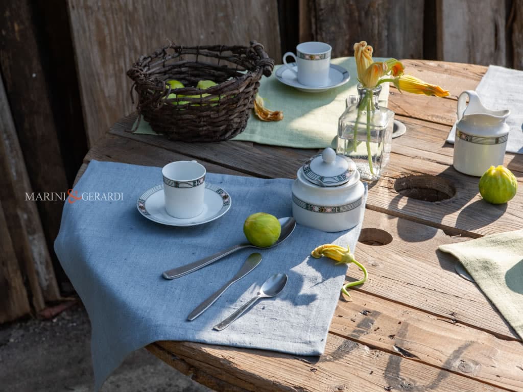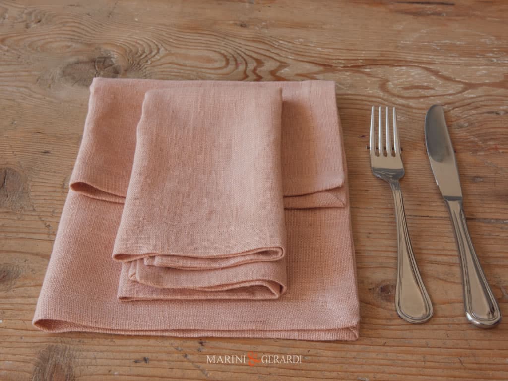 Stile contemporaneo e fascino vintage per un eccelente lino by Marini & Gerardi. I tovaglioli hanno una superficie leggermente grezza e materica che crea un piacevole effetto vissuto naturale. Colori pastello unici