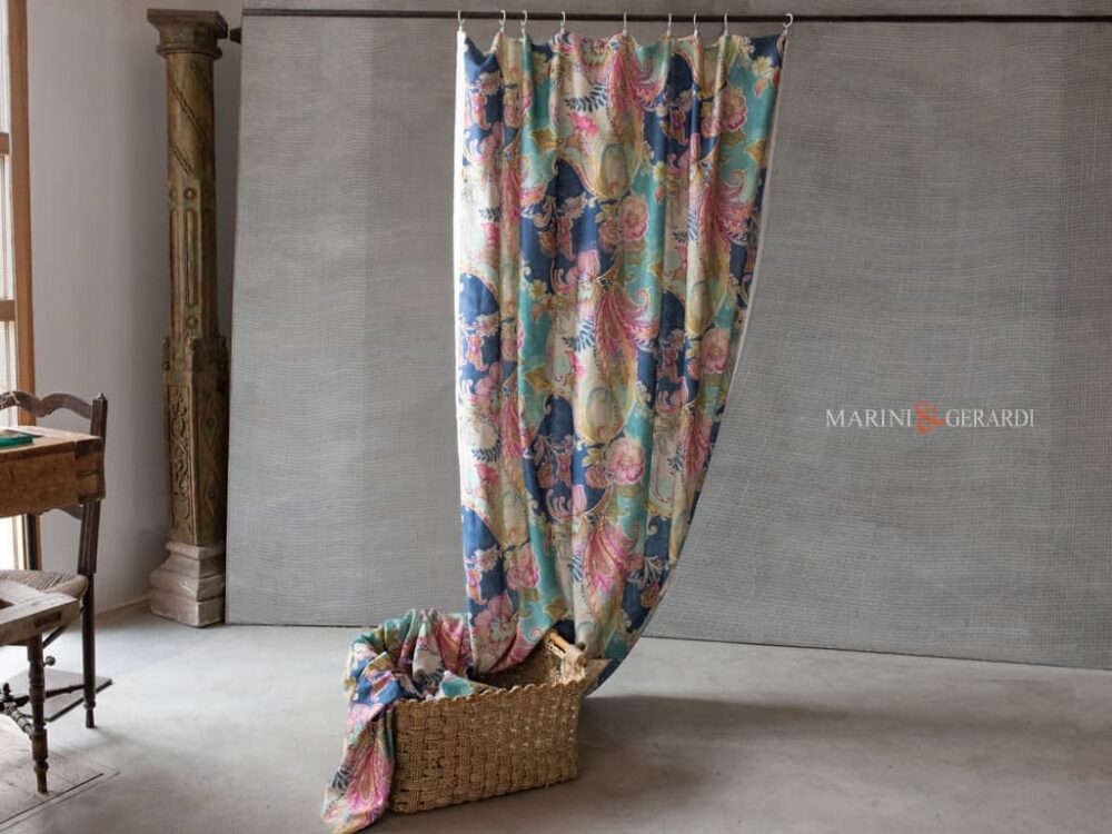 - Tesuuto per Tende a metraggio in Lino & Viscosa a Fiori guache;