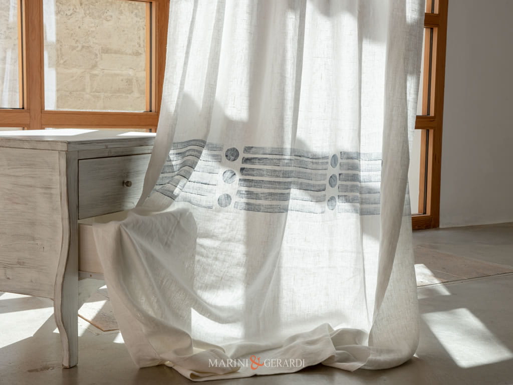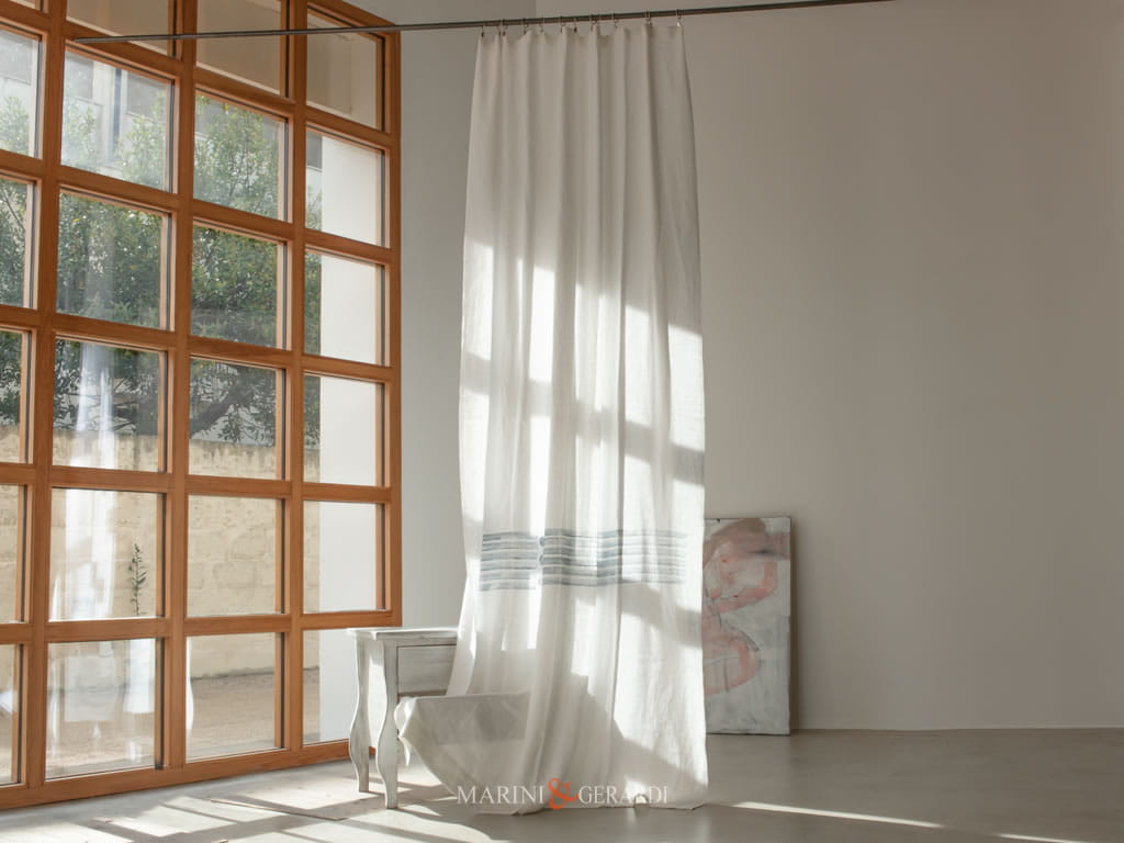 Il Low Cost Marini&Gerardi. Tenda in Lino parzialmente coprente, versatile, fresca e suggestiva per una casa giovane al mare, in campagna, in città.