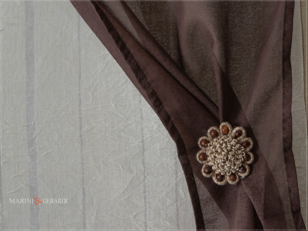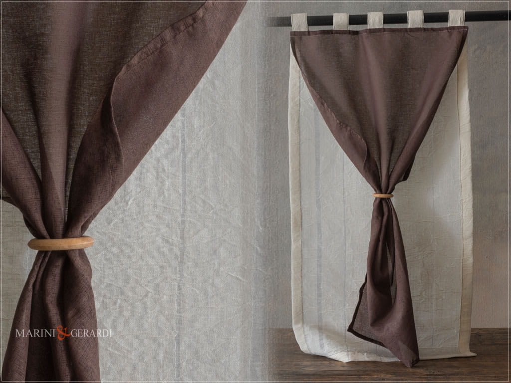 Tende a vetro realizzate con tessuto in puro lino garzato impreziosite da un velo in organza a trama trasparente e delicata. I tessuti utilizzati rendono bello, piacevole ed elegantemente unico il risultato finale.