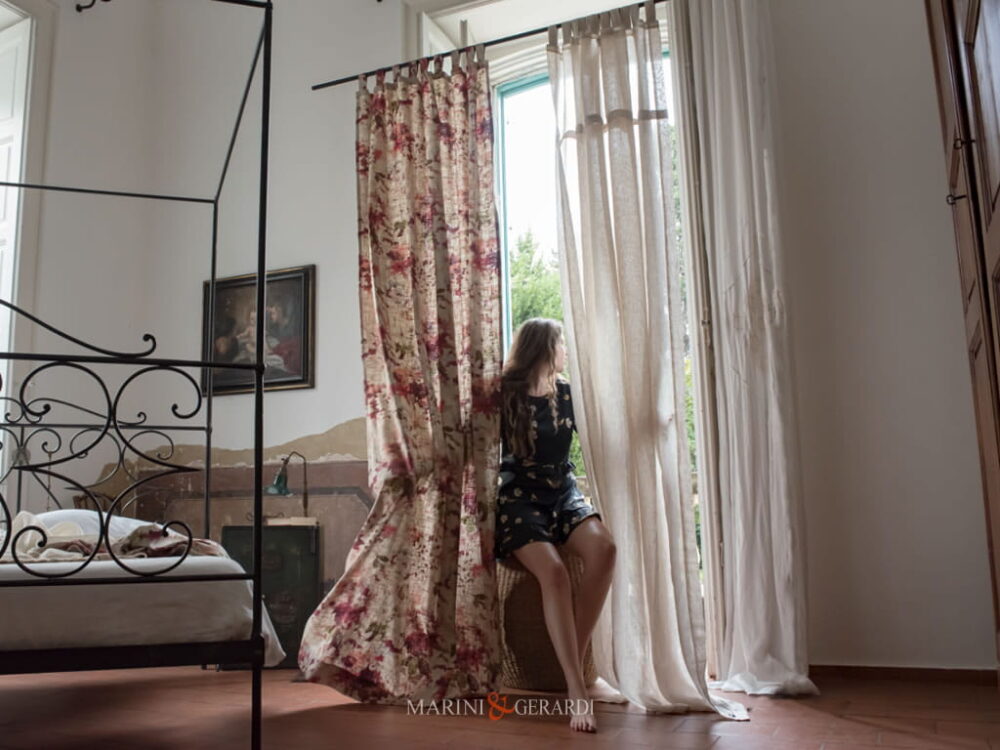 ISLA MARGARITA QUEEN – Tende Camera da Letto e Tende per Camerette – Una tenda semi coprente realizzata con tessuto morbido in misto Lino floreale di primissima qualità. Come in foto puoi combinare anche altre tende in lino tinta unita.