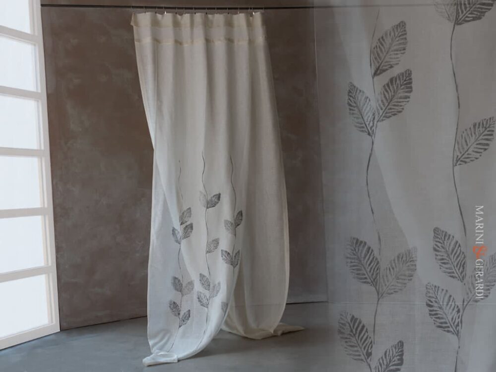 Tenda Interni Minerva Con Tessuto.bianco Filtrante In Lino Design Foglie