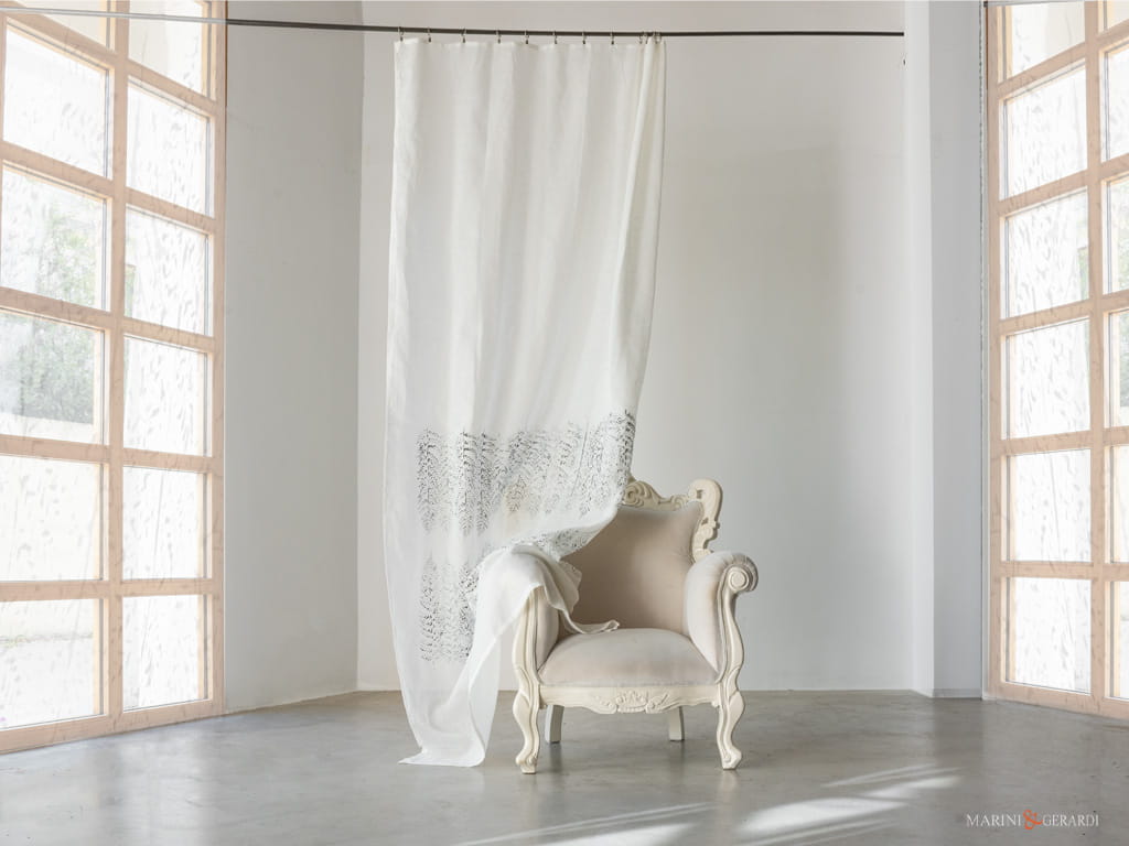 Le tendine in lino offrono luminosità e delicatezza, ideali per creare un’atmosfera accogliente senza sacrificare la luce naturale. Proteggono da sguardi indiscreti, mantenendo una piacevole luminosità negli ambienti domestici. Disponibili non solo in bianco, ma anche in altre tonalità chiare che avvolgono la stanza con un tocco magico e delicato.