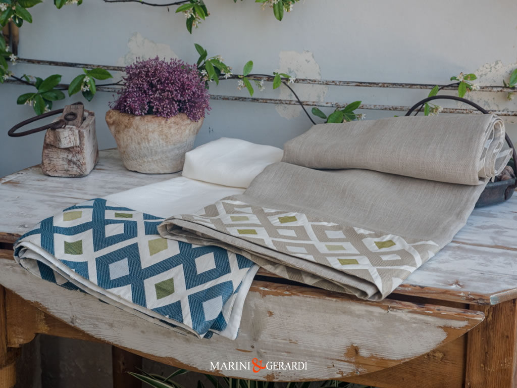 una Tovaglia di lino ispirata a una vita bella, comoda, semplice e pratica coerente con le esigenze di un’epoca, di una società che si confronta con i cambiamenti dettati dallo sviluppo dell’industrializzazione.