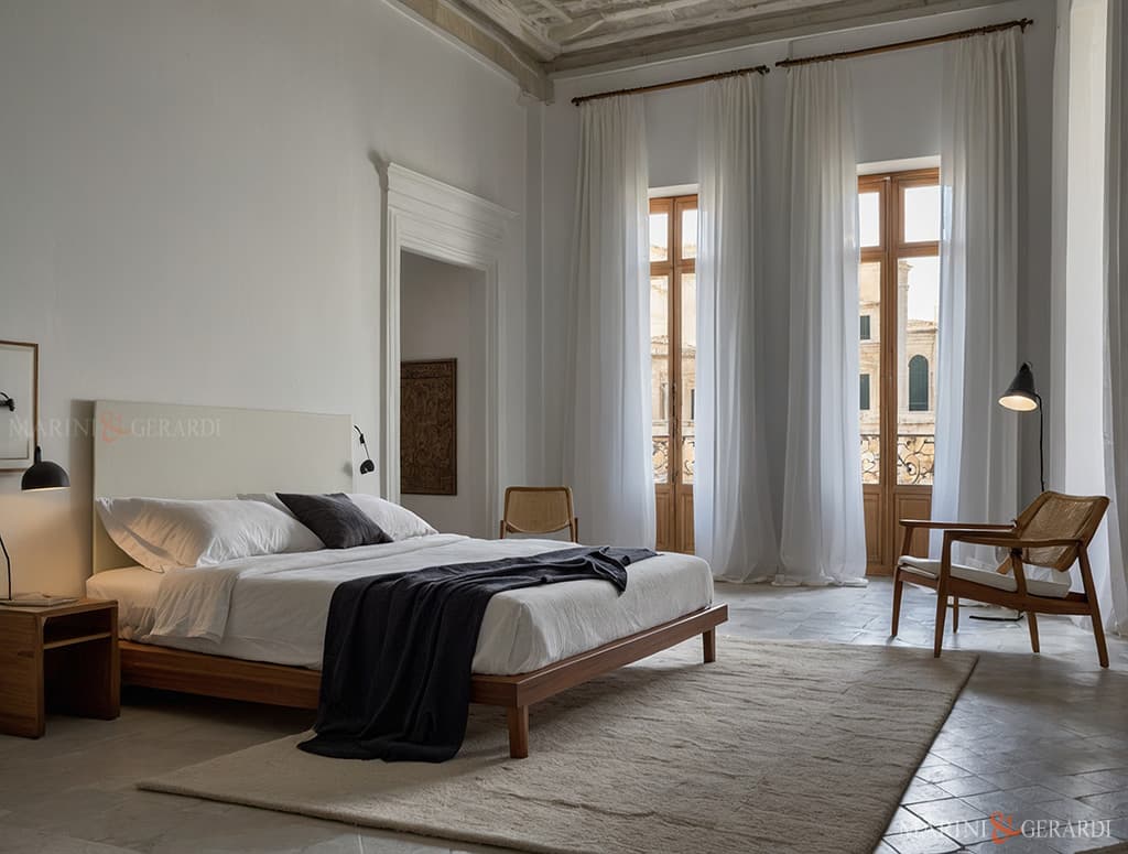Scopri come le tende possono completare uno stile e design minimalista in una camera da letto moderna, con esempi pratici, idee,  fotografie  e consigli di arredamento.
