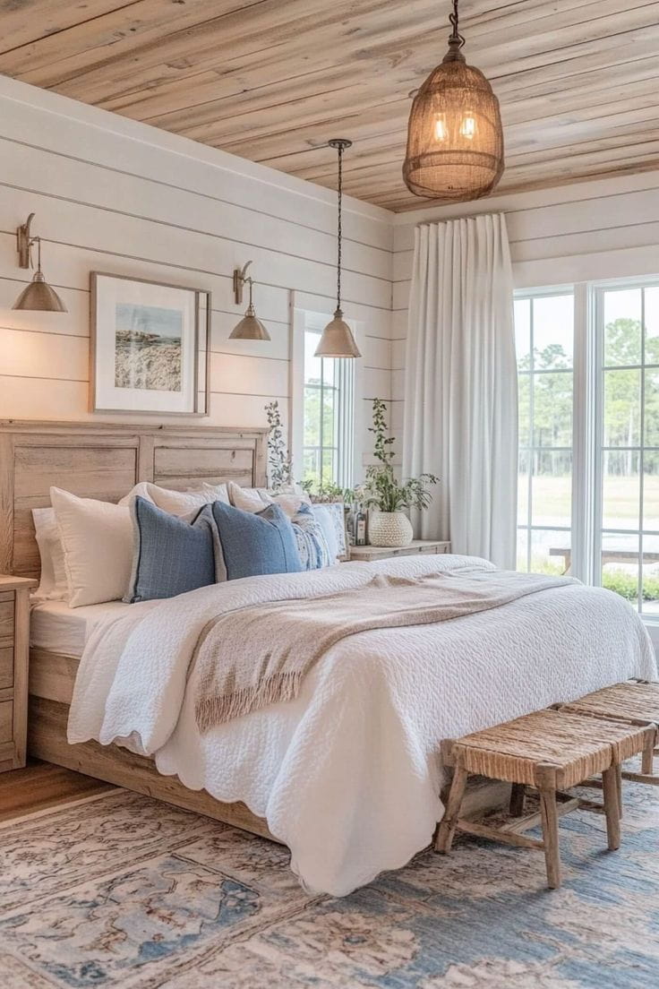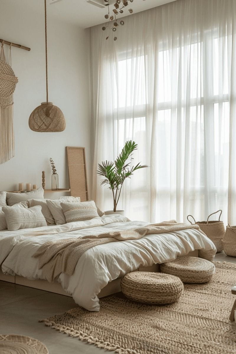 Le tende in lino bianco parlano di eleganza senza sforzo. Non serve aggiungere troppi dettagli: basta lasciarle cadere morbide e naturali per un effetto chic e rilassato, perfetto per una camera da letto da sogno.